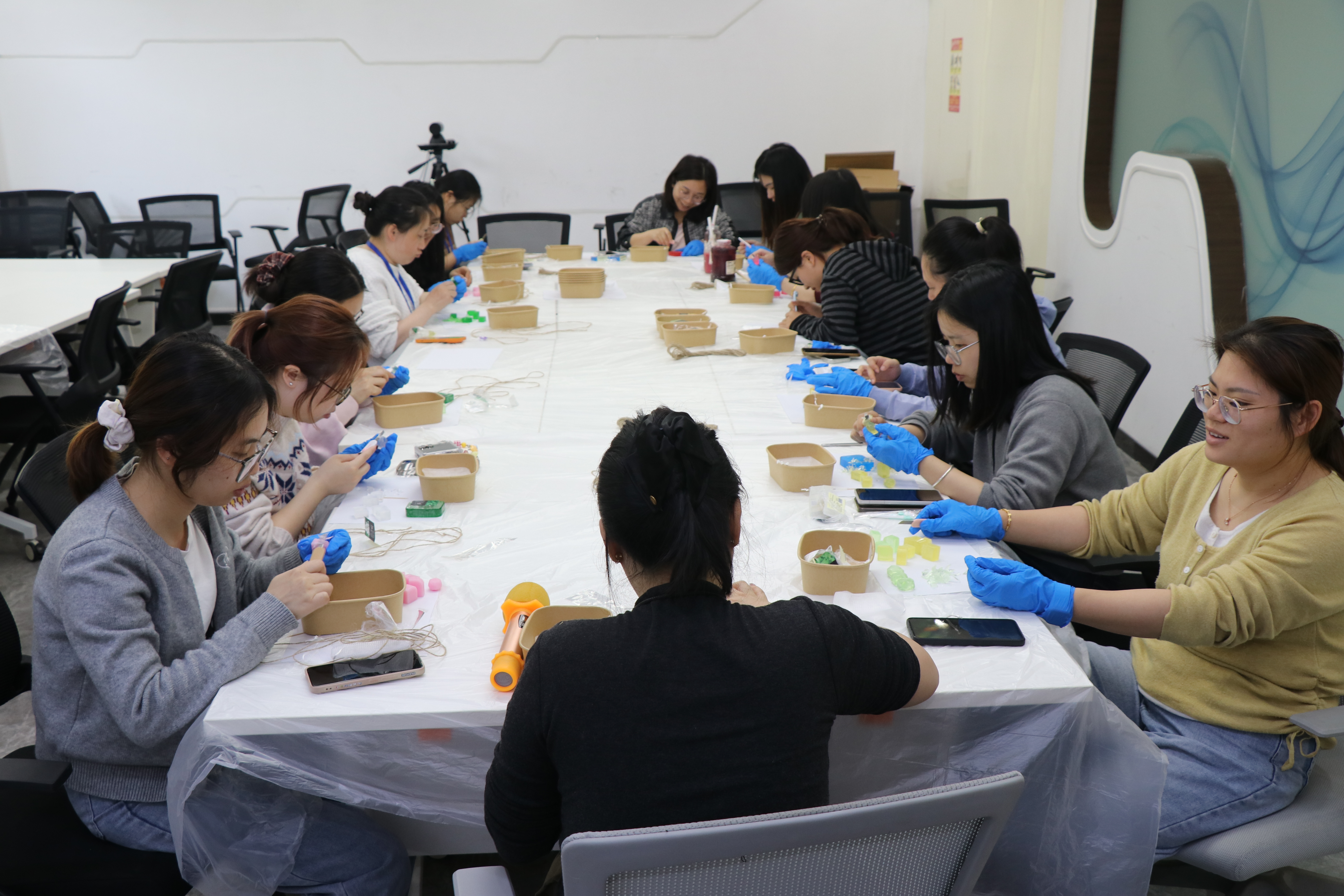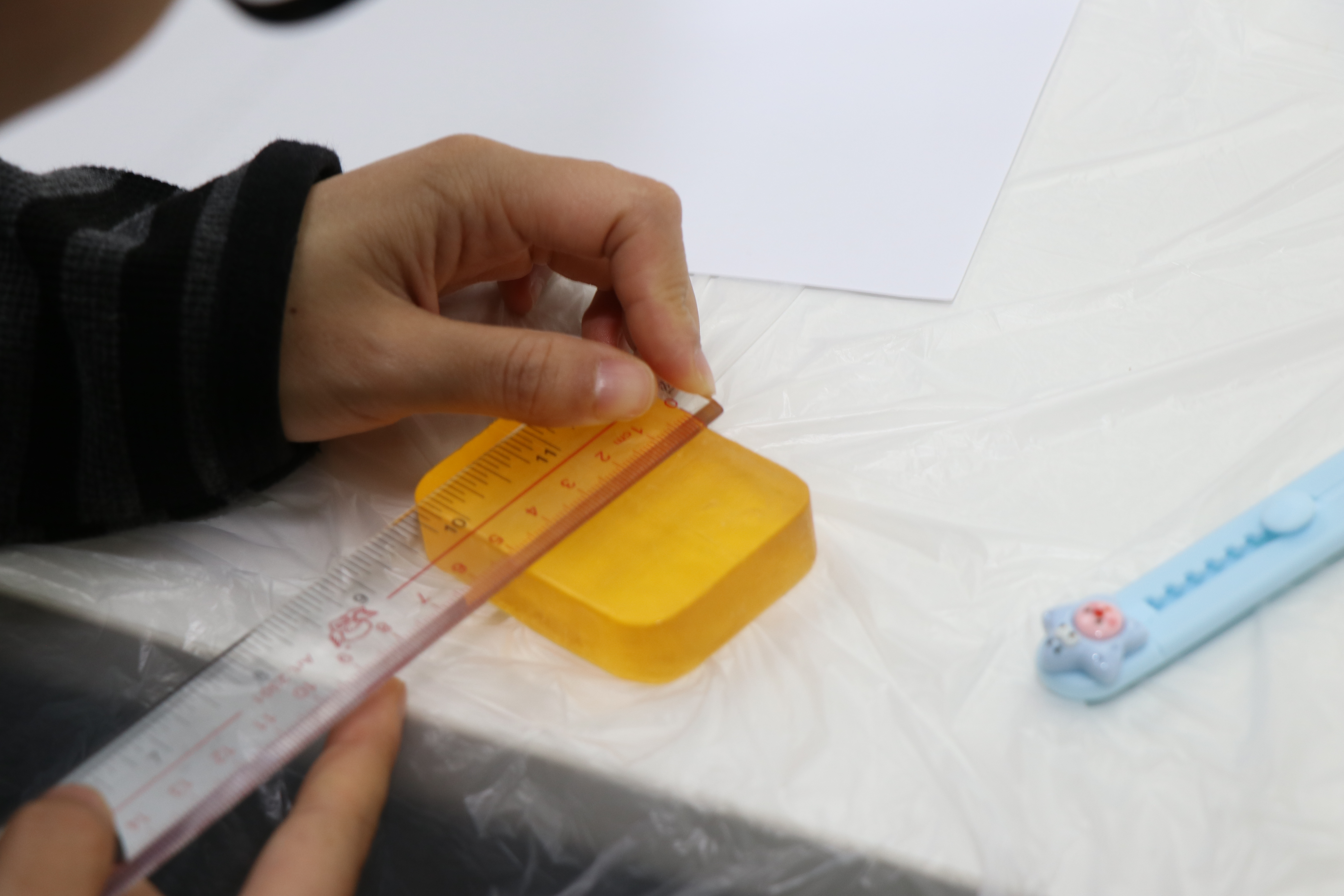 “平时都在忙着处理工作,很少有时间做这种手工活,今天能静下心来亲手做一块手工皂,感觉特别解压。”一位女职工一边切削,一边笑着说道。活动现场氛围十分热闹,大家围坐在一起,一边交流制作心得,一边分享工作和生活中的趣事,时不时传来阵阵欢声笑语。有的女职工专注地削出葡萄形状,力求做出最精致的造型;还有的拿着尺子精心测量,纠结着做哪种款式,每个人的脸上都洋溢着专注又幸福的笑容。