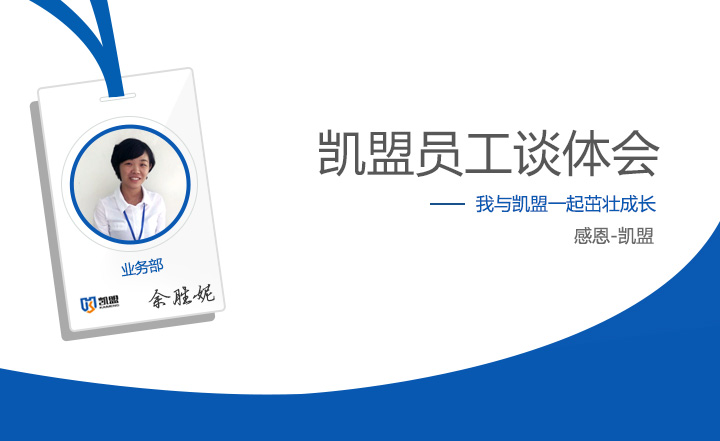 时间过得真快,不知不觉在凯盟公司工作快5年了,我放弃了一些东西,但我学到了更多,我选择了做销售(业务),起初的想法是,业务发展空间大,也想证明一下我自已能不能胜任业务这个职业。我清楚的记得刚进凯盟公司这个大家庭的时候,我不知道我要做些什么,该怎么去做。什么都不知道,脑子里一片空白。不过还好公司对每位新进人员提供为期一个月的业务培训。我便很快从什么都不懂到很熟练的处理业务上的事情。我非常感谢凯盟公司的领导刘总、刘副总能提供这么好的一个平台,能给我学习的机会来展示自我。同时也感谢徐经理,是你教会了我什么是销售?如何做一个成功的销售员,虽然我现在还不是一个真正成功的销售员,但我会努力的。谢谢你们的细心栽培。
